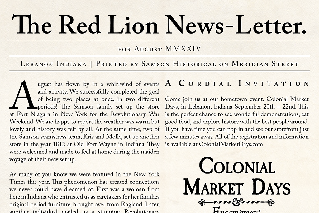 August has flown by in a whirlwind of events and activity. We successfully completed the goal of being two places at once, in two different periods! The Samson family set up the store at Fort Niagara in New York for the Revolutionary War Weekend. We are happy to report the weather was warm but lovely and history was felt by all. At the same time, two of the Samson seamstress team, Kris and Molly, set up another store in the year 1812 at Old Fort Wayne in Indiana.