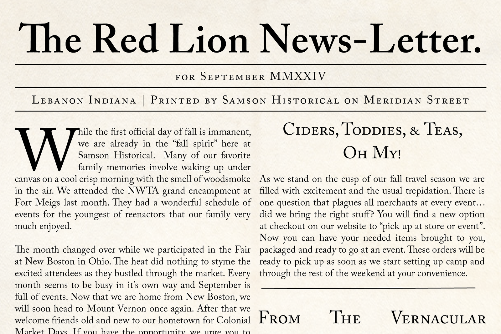 While the first official day of fall is immanent, we are already in the “fall spirit” here at Samson Historical. Many of our favorite family memories involve waking up under canvas on a cool crisp morning with the smell of woodsmoke in the air. We attended the NWTA grand encampment at Fort Meigs last month. They had a wonderful schedule of events for the youngest of reenactors that our family very much enjoyed.